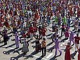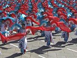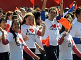 "我的中国心"方阵 "同一个世界"方阵 民族团结舞表演--爱我中华 |